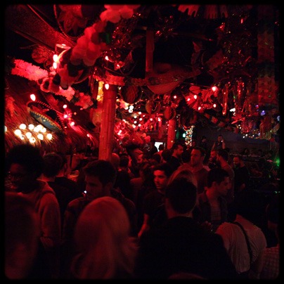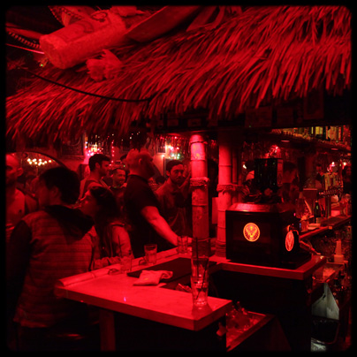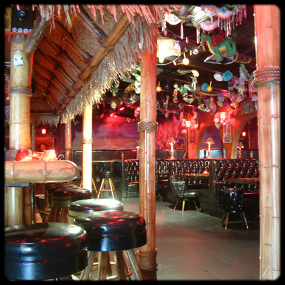 The table tops pay homage to the previous bar, painted by local artists celebrating the drag queens that used to perform there. Bathed in dark red light, cluttered with old Mexican party favors and an amazing collection of black light paintings, the Cha Cha Lounge has thrust Sliver-Lake forward and into the collective national conscience by attracting the nation's hippest taste-makers and trendsetters.